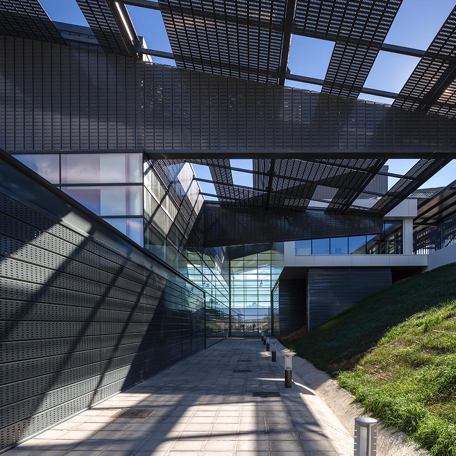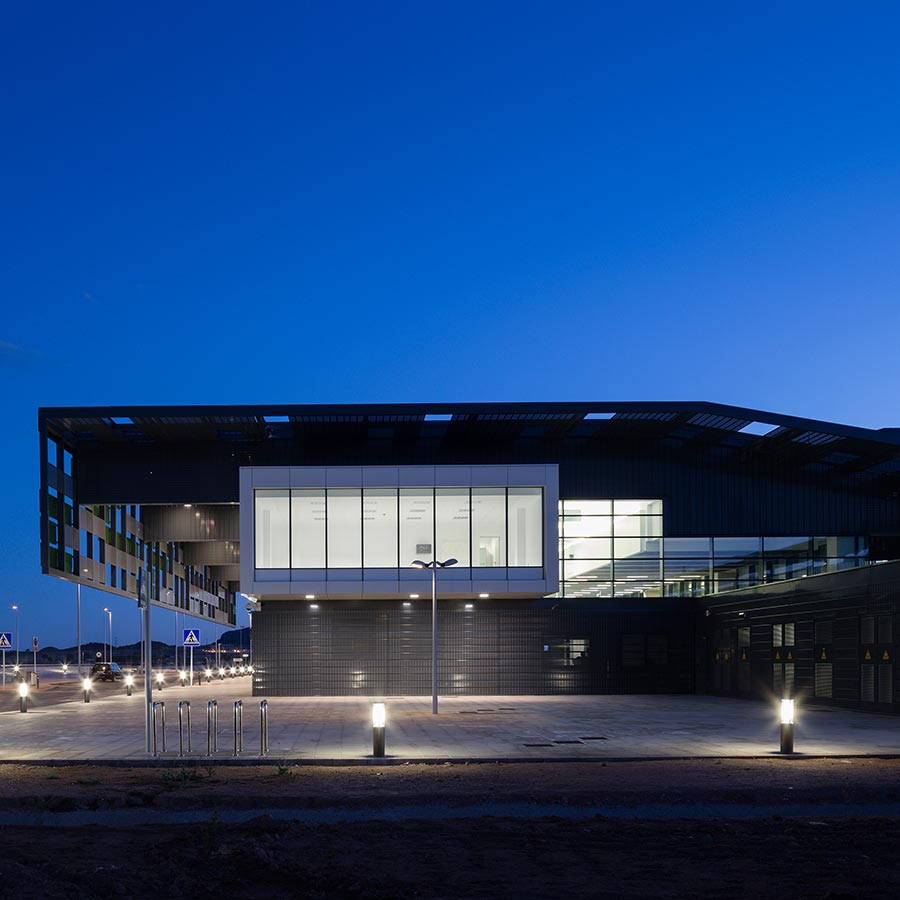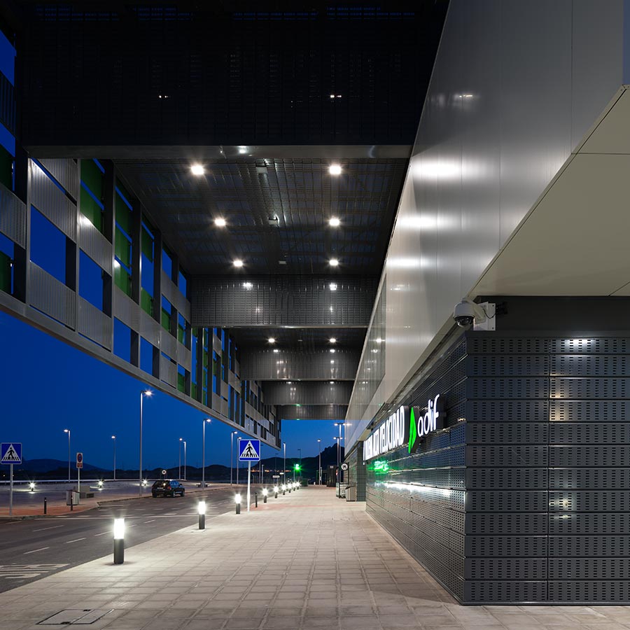 The building stands out prominently in its surroundings, serving as a landmark thanks to a huge roof that covers the station and railway lines. The roof is undoubtedly the protagonist of the project in terms of both its image and its notion of sustainability. At the front of the station the roof acts as a double skin, facilitating the solar control of the interior zones. In the station area the roof is perforated to attach and hide installations as well as to allow sky light to filter through and illuminate the concourse. And finally the roof also gives travellers shade and protection along the station platforms.